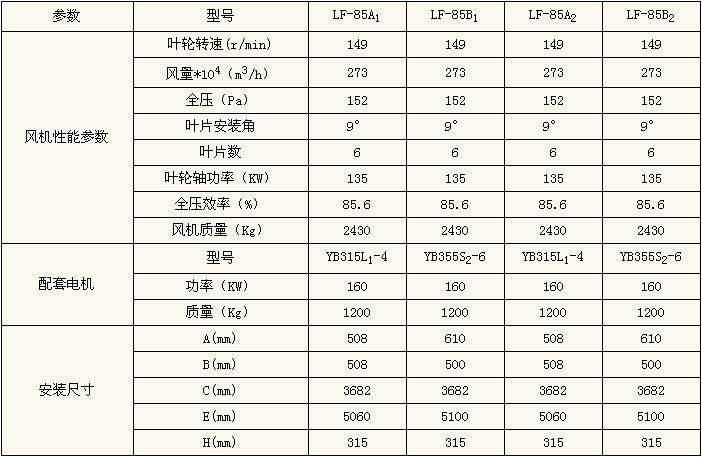 LF-85風(fēng)機(jī)性能參數(shù)一覽表