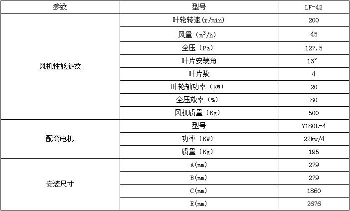 LF-42風機性能參數(shù)一覽表